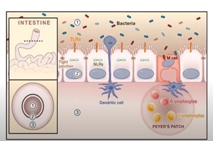 Hệ miễn dịch tiết ra 80% kháng thể IgA -là tuyến phòng thủ đầu tiên không cho vi khuẩn bám vào tế bào biểu mô, và trung hòa độc tố.